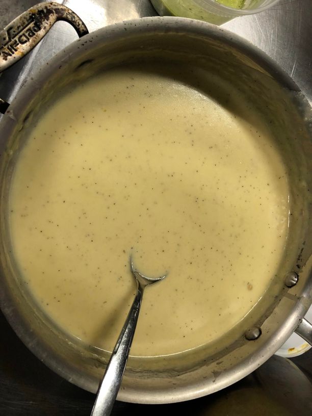 Last Week we were taught about sauces and how to make them. The "5 Mother Sauces" upon which healthy cooking is based include: Cream based, Brown based, Tomato based,fish stock and Beloute or thickened chicken stock. From these several combinations can be made. If you want to thicken a sauce or stock then you can add a mixture of corn starch and water to boiling stock. Be sure to mix the corn starch in cold water before adding to the boiling stock. The key to eating healthy is to avoid processed and gluten foods. It's definitely a lifestyle change. I've had people ask me if it's working. I say yes I've lost a few pounds and most importantly lost 2 inches around my stomach! My goal in addition to weight loss is to lower my cholesterol and improve my LDL. One of the delicious sauces that are easy to make is alfredo. It can be mixed with pesto sauce or marinara for a totally different taste.