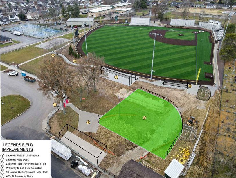 Wiffle ball markings will be permanently set on the field, where Ruxer Field's old foul poles will stand at the end of the foul lines.