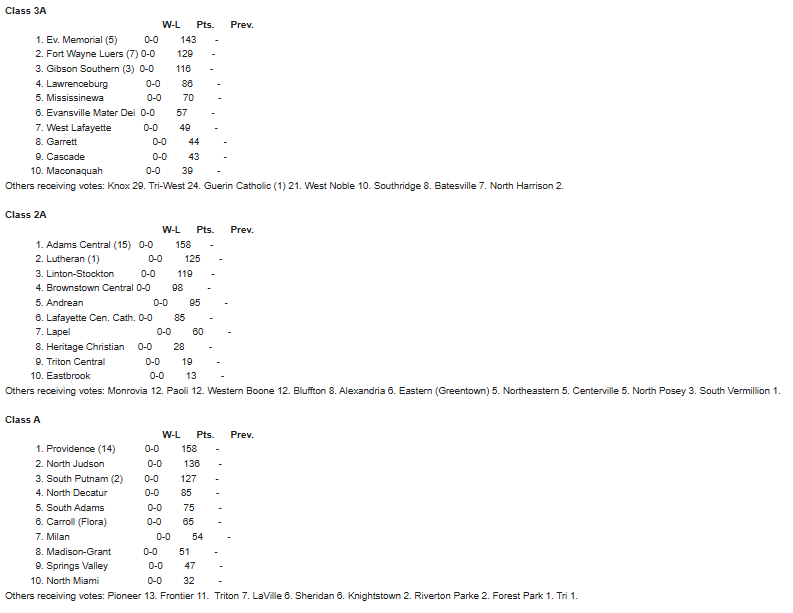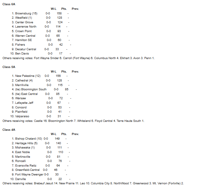 Indianapolis - In the initial USA Today football poll in 2025, numerous area teams find themselves ranked.