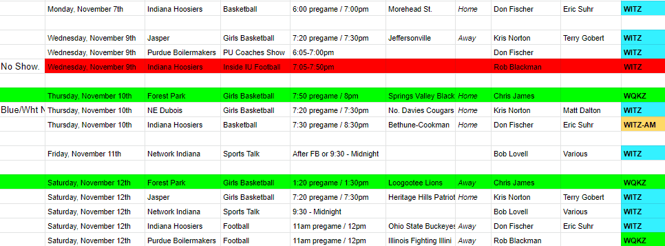 Live Sports Schedule 11/7-11/13: Hoosier, Lady Wildcat Basketball Return