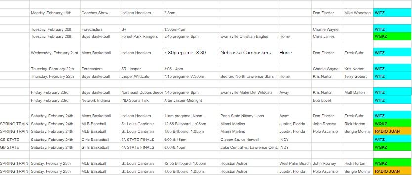 The following on air schedule represents: WITZ 104.7 FM, WQKZ 98.5 FM, and Radio Juan 99.1 FM/990 AM.