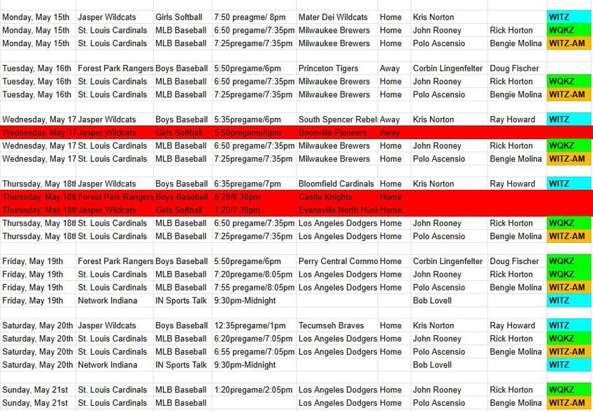 Local Sources - In this week's sports schedule, local baseball and softball teams gear up for the postseason while the St. Louis Cardinals look to keep a win streak alive.